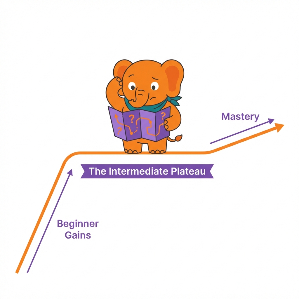 This is the Intermediate Plateau. It is the graveyard of language learners. It is where 90% of people get stuck, and where 90% eventually quit.